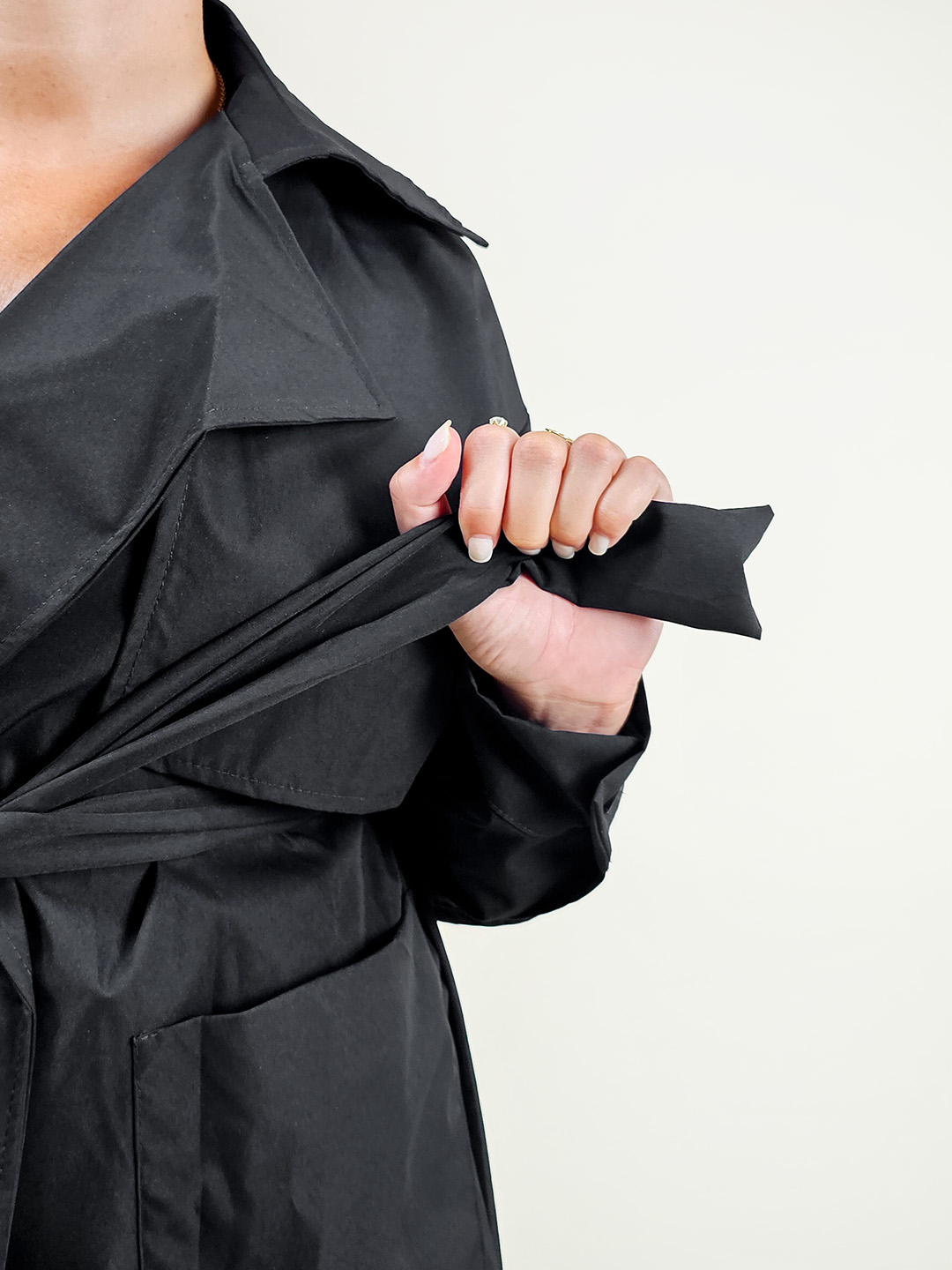Trench long hauteur genoux Coton (63%), Polyamide (32%), Élasthanne (5%),femeture croisée sans bouton avec ceinture, 2 poche exterieur, manche avec bord a fermeture bouton