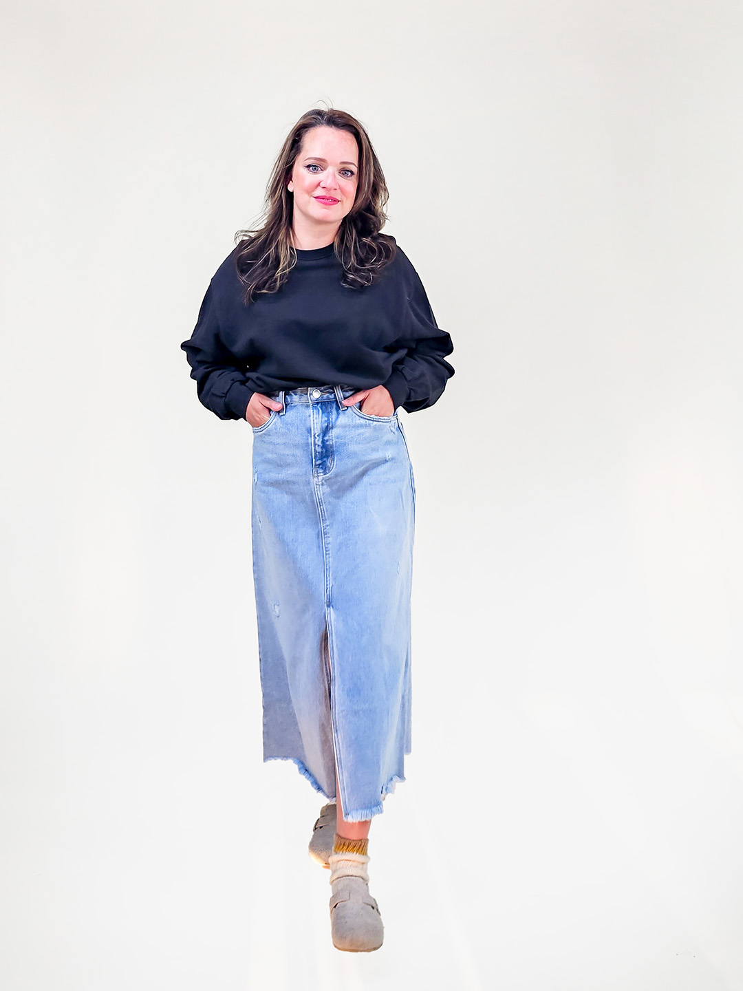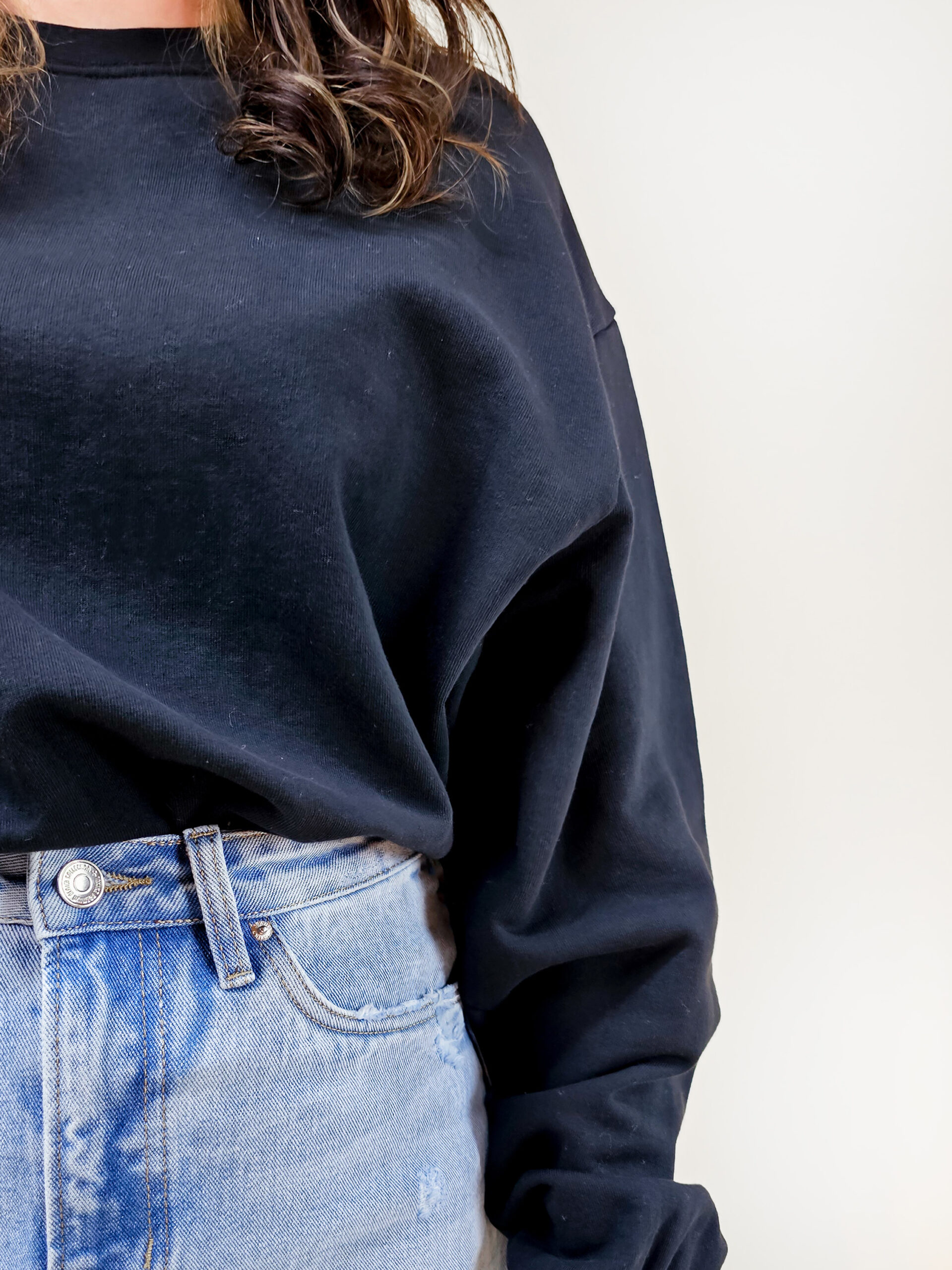 Sweat en molleton de coton mélangé Polyester (95%), Élasthanne (5%). Modèle oversize avec emmanchures descendues et manches longues. Finition bord-côte à l’encolure, aux poignets et à la base.